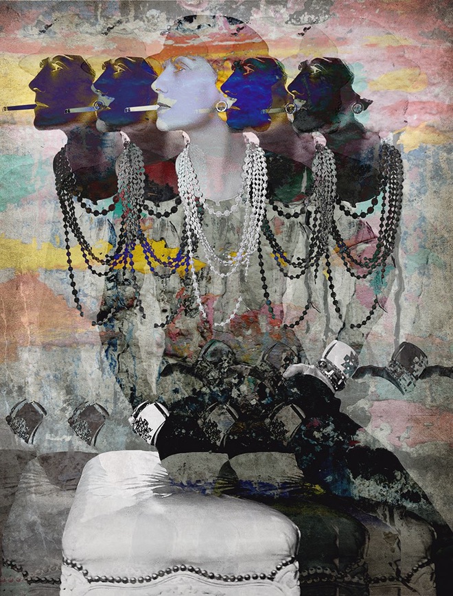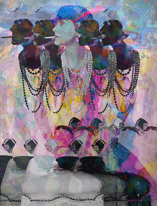 I particularly like this image of Coco Chanel and its various stages. I think each of them are artwork in their own right. And yet, the final combination offered, feels “whole”. I do not know, whether this isso, because the artist suggests it or because it really is. I am impressed with the invitation from Mrs. Vermeer, to let us travel with her creative process, by offering the individual layers on her website for us all to see. Here is a sample with Coco Chanel, but here you can see one of QEII and many more