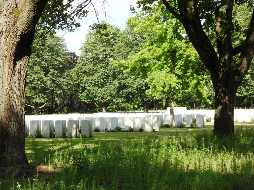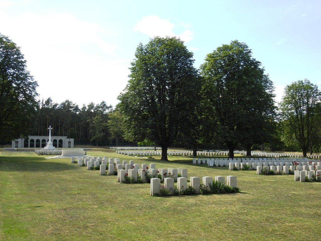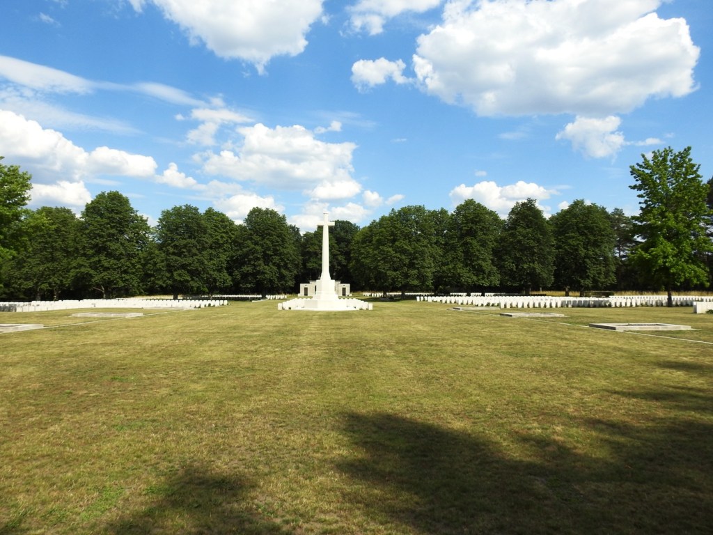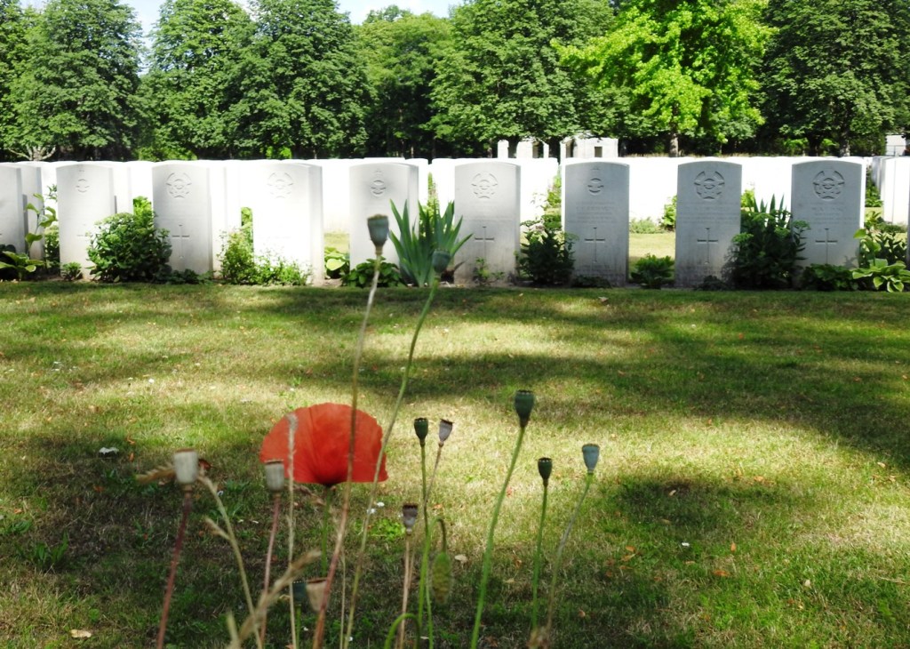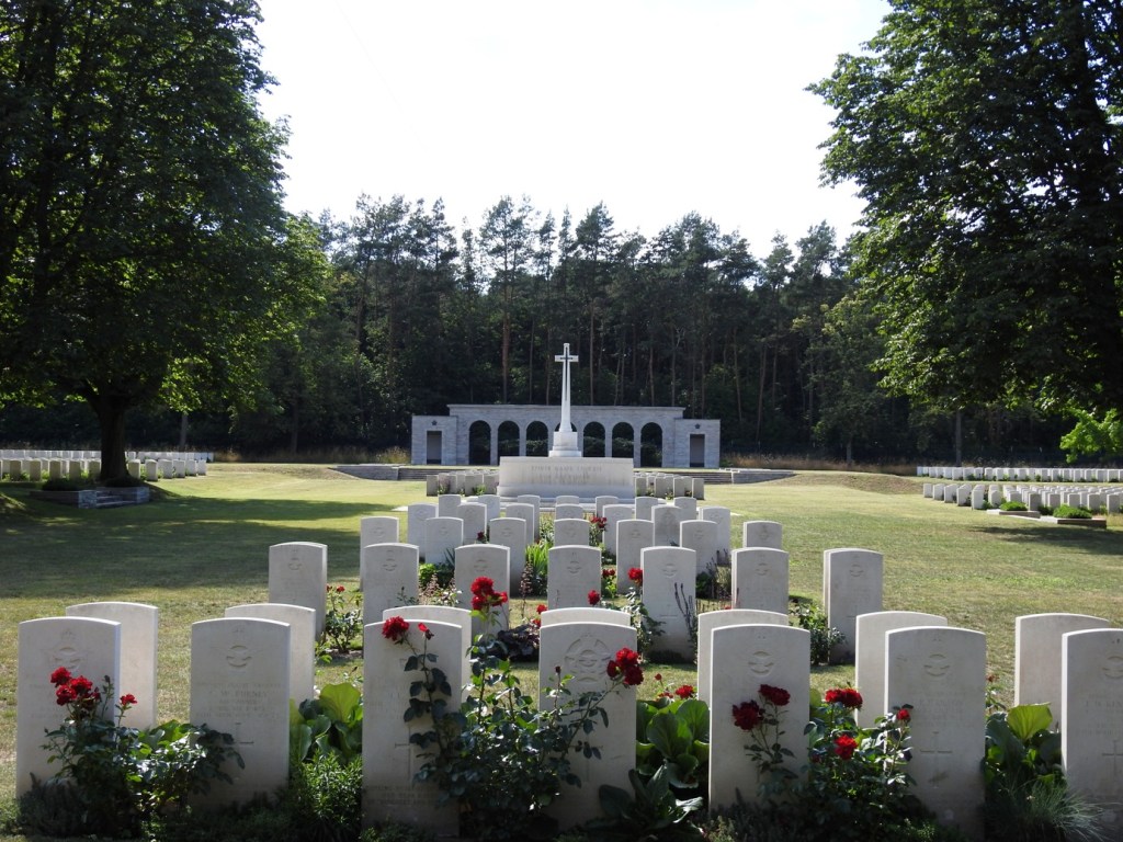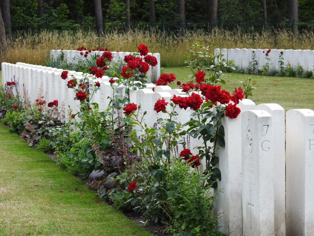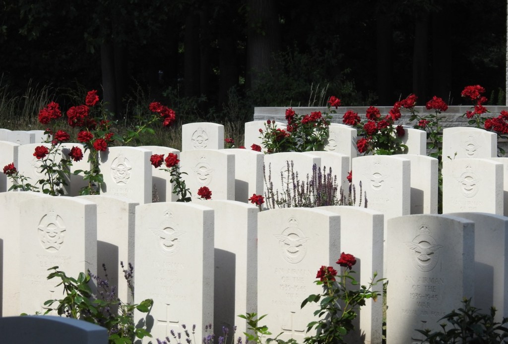 Third, I read, who rests there: Mostly airmen of RAF Bomber Command. Which flew over 387.000 sorties in Germany during the course of World War II and lost over 55.000 men, representing a death rate of 44%. The average age of these crews was just 22. It is one thing to read these facts at the entrance. But quite another to walk past the rows of stones, each giving a unit, rank, name and the ages: 20, 21, 22. There were stones for young men from – of course – England, Scotland, Ireland and Wales. But also from as far as Cyprus, India and New Zealand. Solomon’s seal and Hebrew lettering, right next to crosses and even some muslim half-moons with Arabic letters. There are also many stones marking the grave of unknown soldiers, whose families have hoped for their return in vain. All of these men giving their lives in the effort to end Hitler’s grip on Europe and the biggest crime against humanity known so far.