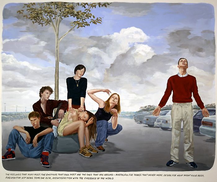 A real talent for figure drawing, esp the gangly slouchiness of teenagers. I especially liked the last one, along with the caption. 🙂
