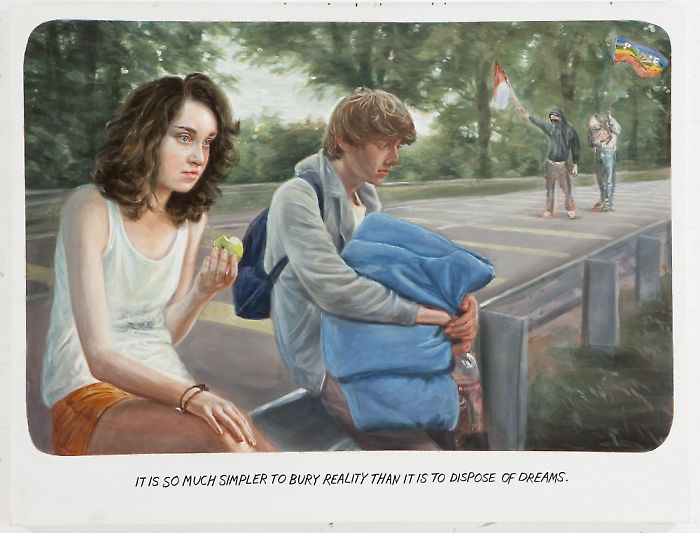 It came as a surprise to me, noticing I never mentioned Muntean/Rosenblum here on this platform. To any self-respecting Austrian art lover, this two names should be household names. What with their looong trailing list of exhibitions and their world-wide fame. If one likes figurative, contemporary painting, there is no overlooking these two.