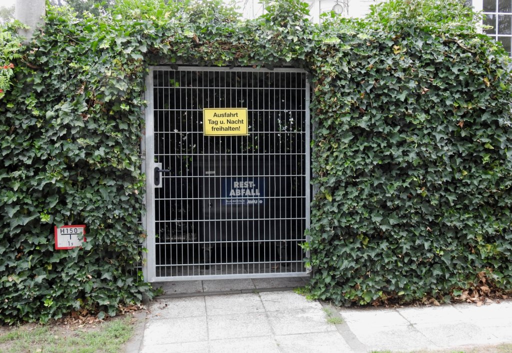 1 – the solid gate for the bin (you know, in case someone wants to steal your rubbish). With a big sign on it, warning the public to keep the entrance free at all times. Just in case, the bin suddendly needs to go places…