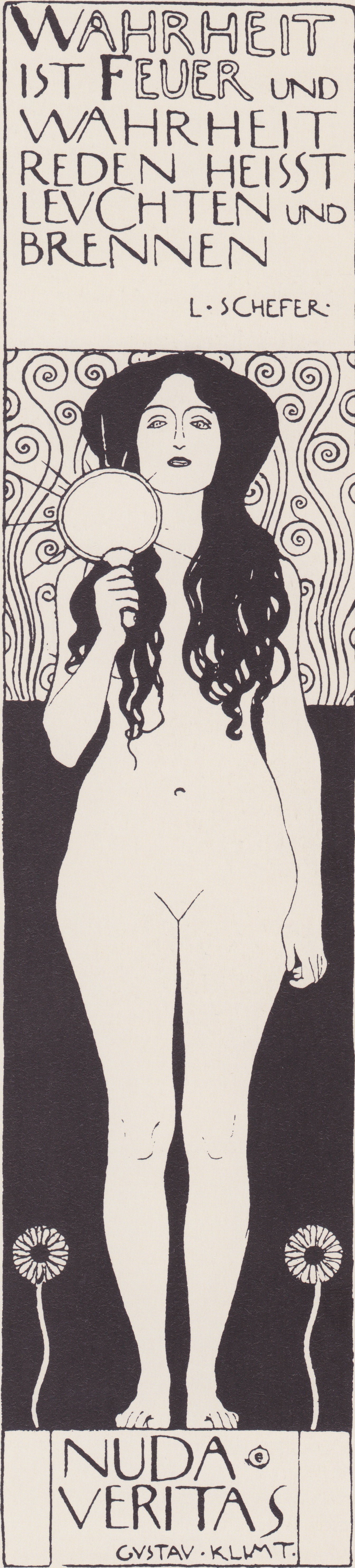 And last, but not least, the lettering on the last painting called Nuda Veritas (made for the Art Journal VER SACRUM) reads: Wahrheit ist Feuer und Wahrheit reden heisst leuchten und brennen. L. Schefer It is a quote from a German Poet called Leopold Schefer and translates to: Truth is Fire and Speaking the Truth is to Shine and Blaze.