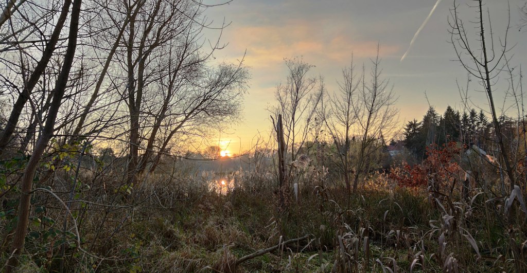 Today, sweetheart and I walked around lake Hermsdorf, which is just a thirty minute walk away from our flat. Despite it being so late in the year, it was still very nice to look at, with the autumn colours still on. The only annoyance were the countless other folks out and about on bikes or their feet. But this is a direct result of the pandemic, I guess. Everyone wants to get out into the fresh air, these days, as this is pretty much the only thing still allowed.