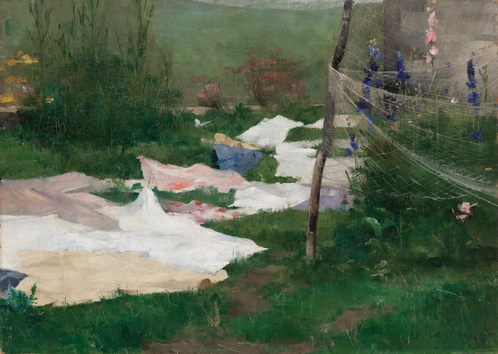 Let’s start with the early years. Born 1862 in Helsinki to an office manager and his wife, she fell down a flight of stairs as a four year old, breaking her hip. This accident left her with a limp for the rest of her life. Her talent in drawing was spotted early by Adolf von Becker, a painter who ran an art school in Helsinki. He and later a certain Prof. Georg Asp paid for her tuition at Beckers art school. At the age of 17 she already won a prize at a competition organized by the Finish Art Society. Enough fame to grant her travel scholarships by the Imperial Russian Senate (Finland was part of the Russion Empire back then), enabling her to go to Paris, later Britain and back to France to study and work. During this time she painted in Realist style. She expressed admiration for Manet, Degas, Morisot and Cassatt. Her two best know paintings stem from that period: The Convalescent and The Dancing Shoes. But also many a still life and landscape in plein air style. Great art, all of it, I think. Have a look.