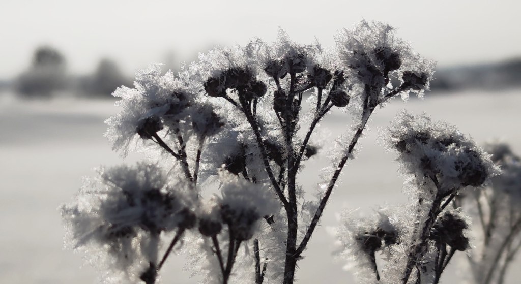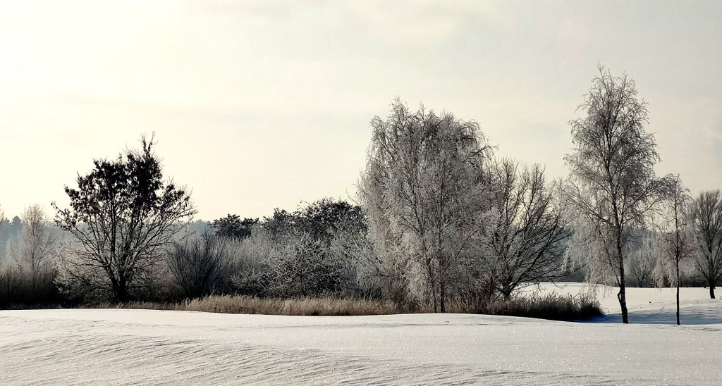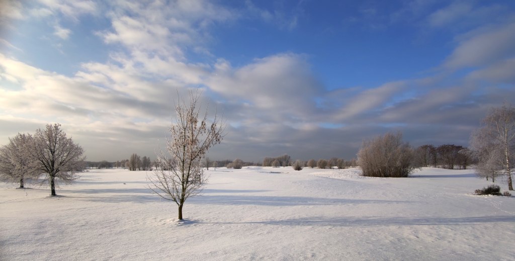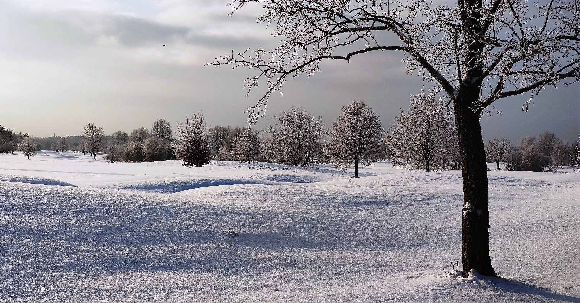 But yours truly is out here in suburbia, really enjoying winter. Yesterday the sun came out in the morning, so I left my office and ventured out on the golf courses (which are closed for play, of course) to take a few pictures of the frosty glory. Have a look.