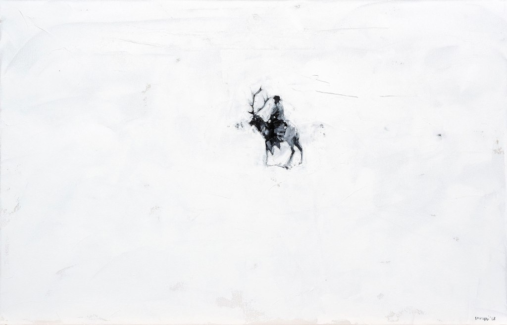 His art is becoming more reduced by the year, now almost completely down to black/white/gray. But I also include a few tinted works, here. I think, they are very nice, too.