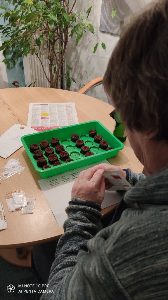 Whereas I am more the just-put-stuff-into-the-ground-and-see-what-happens type of gardener, sweetheart has a plan. And if I say plan, I mean A PLAN! He’s German, no denying it… Spreadsheets were typed of what goes where. Long fretting over which variety to choose occured (along with complaints of having received too many gift seed packs from me, so now there was stress). Lamps were installed. With a timer, mind you, to portion the amount of light for the seedlings just so. Seeds were put underground with tweezers, water sprays are applied daily.