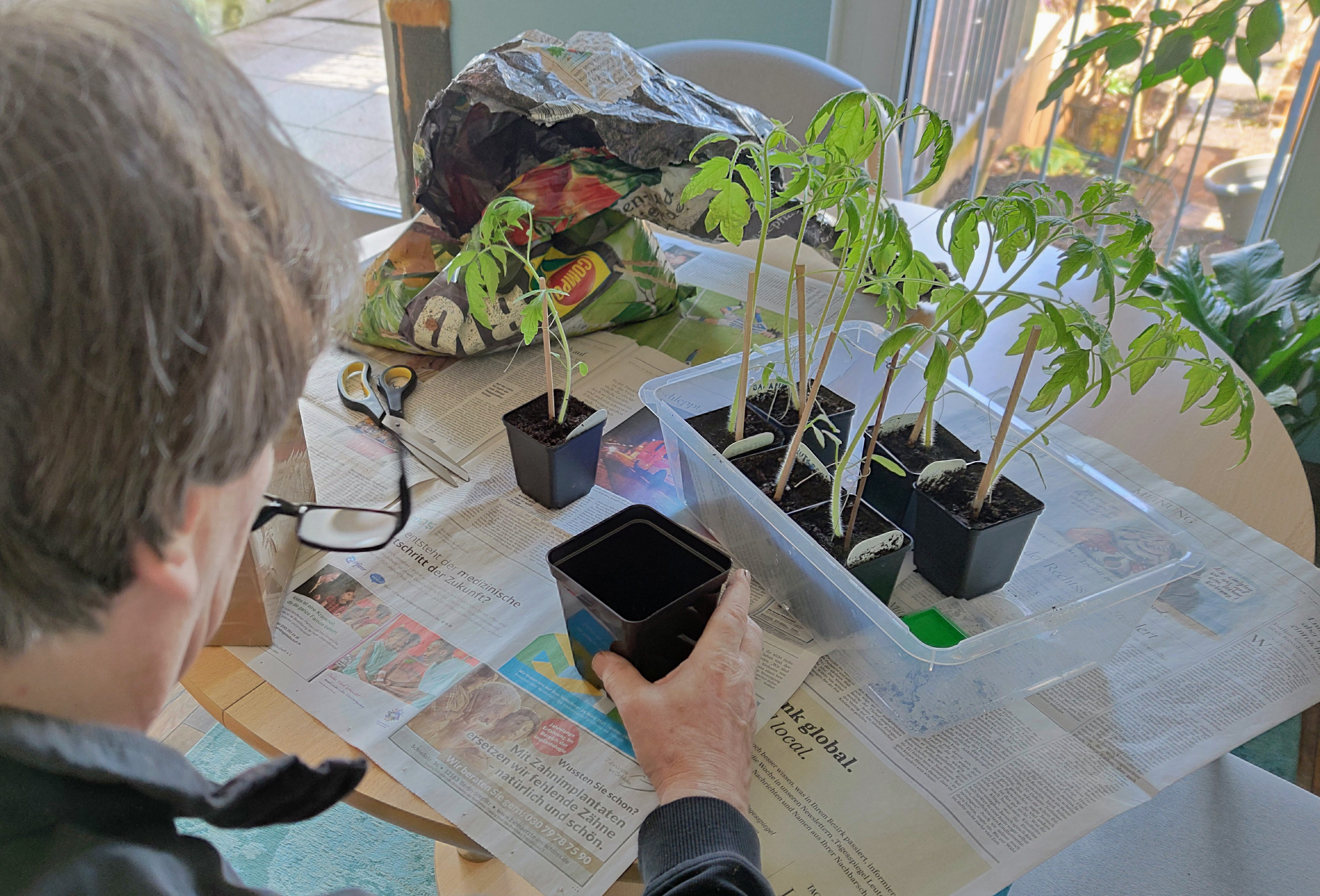 Sweetheart set up his own farming project a couple of weeks back: his tomato plantation. He tried to grow a couple of plants last year for the first time since I know him. Incited by his success, he revved up procedures considerably, this year (or maybe it is all just another kind of Covid-related activity, who knows). The doorbell kept ringing, parcels full with pots and stickers and seeds and what not, started to arrive weeks back.