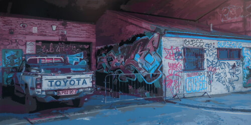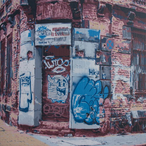 Please meet Joseph Steininger today. The Seattle based artist and printmaker has this street art flair in his body of work, using spray paint. And yet, his work is so very fine. I have no idea how he doest it. But I like it for its filligree modernism. Hope, you do, too…