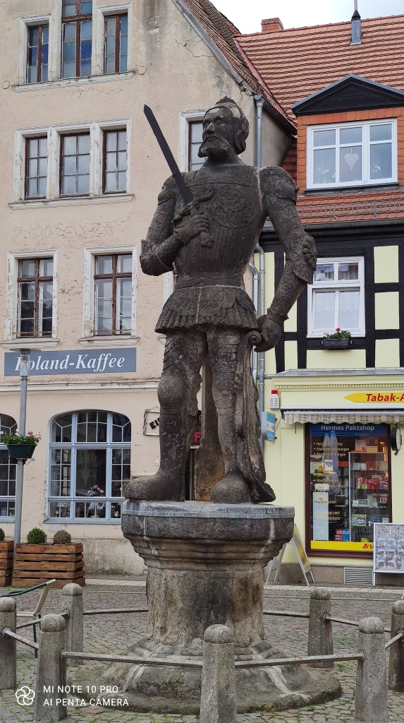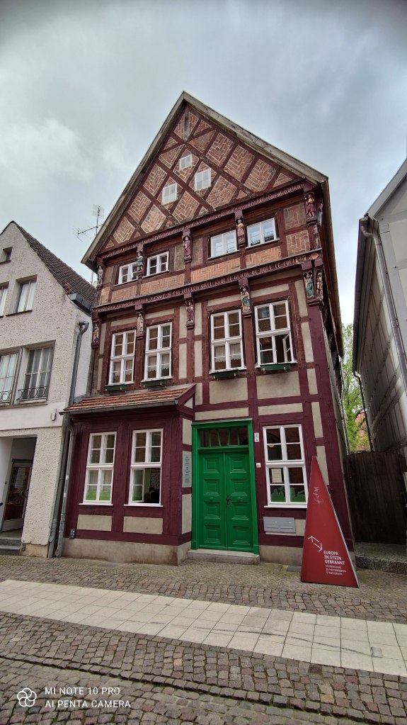 As promised last week, here some more impressions about Perleberg. This nice Prussian city was founded 1239 and features really nice, ancient timber-framed houses in the town center. And prides itself to be called “Rolandstadt” after a certain knight Roland. But there was no real knight of that name anywhere around PErleberg: it is a symbol for a couple of places, that became independent cities in the Middle Ages. The name Roland comes from a heroic liege of Emperor Charelmagne, a certain Hroudlandus, who was killed in action 778 at Roncesvalles. And of course, there is a monument of Roland right at the center. It represents a free city with its own court and independence of higher aristocracy. With that came also certain trading and taxing rights. Subsequently, that meant some wealth.