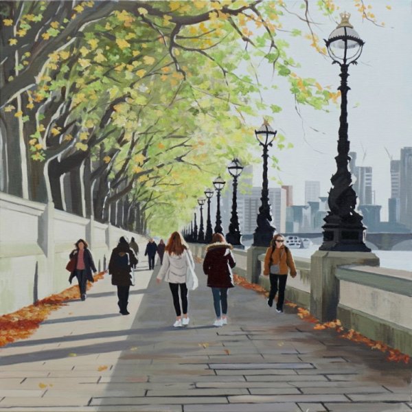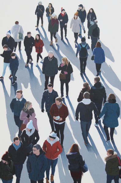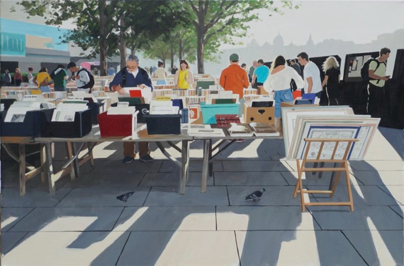 Please meet Britsh artist Jo Quigley this Sunday. He holds a MA in Applied Fine Art from Kingston University and now lives in Surrey. He lately started to paint crowds, but also does wildlife – for which he won prizes already – and people.