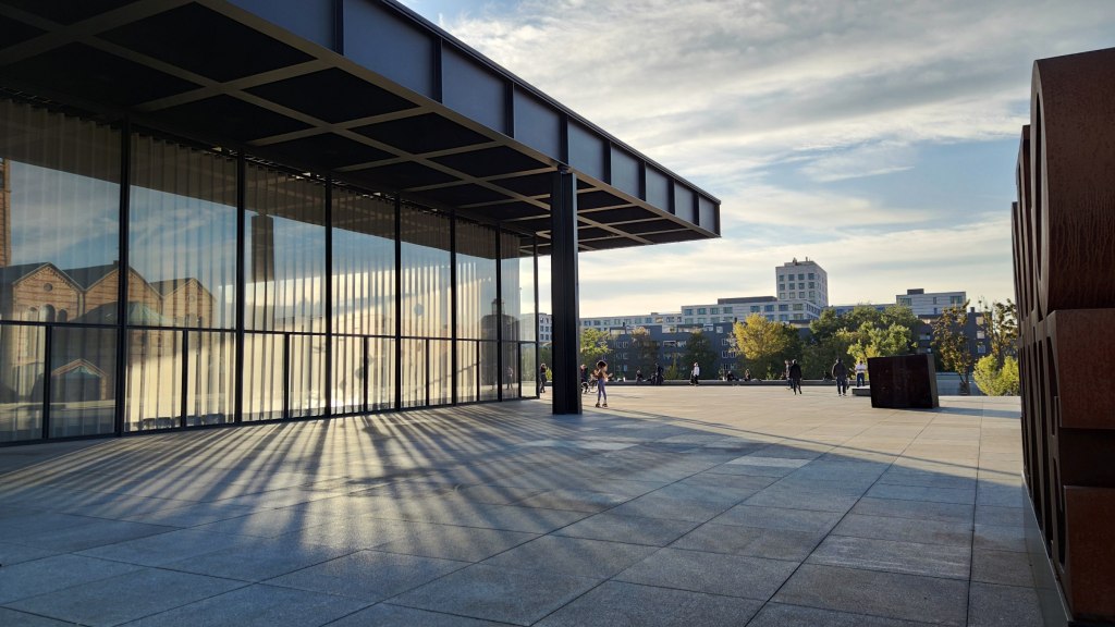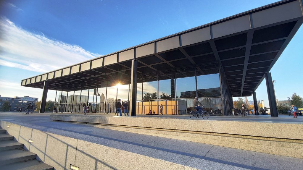 I have been absent for a while, but today is a day to celebrate. My favourite building in Berlin reopened: the Neue Nationalgalerie by Mies van der Rohe. The most perfectly balanced building I know. After years of hiding behind scaffolding the house is back: unchanged, for the most part. David Chipperfield architects did a great job not disturbing this masterpiece, while restoring it. This project cost Germany 140 million Euros – and I think it’s worth every cent of taxpayer’s money (mine, too – this is exactly why I don’t mind paying tax).